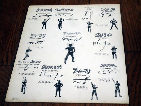 裏面に円谷プロの特撮ヒーローのサイン表記が、いろいろあるのがいかしてます。