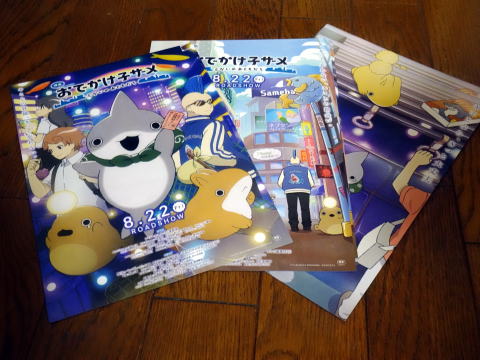 「おでかけ子ザメ とかいのおともだち」のパンフレット、チラシ3種類。パンフレットは早々に売り切れで劇場で購入できなかったため。。