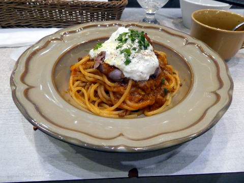 利久の牛たんと仙台牛ローストビーフの追い肉ボロネーゼをいただく。