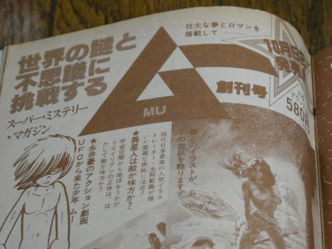 中身を見ると、記事があるわけではなく、ムー創刊号の広告が載っていて、永井豪先生の「UFOから来た少年 ムー」のイラストが見れます。