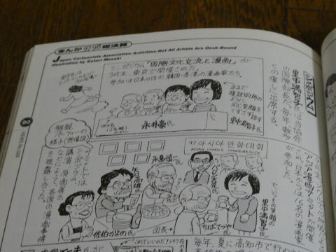 漫画協会の活動報告の記事で、シンポジウム「国際文化交流と漫画」に永井豪先生が出席している様子と、