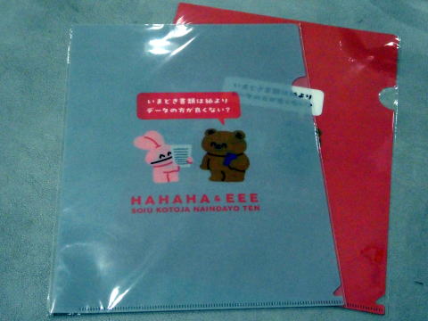 せっかくなので、ハハハとエエエのクリアファイルのグッズを購入。